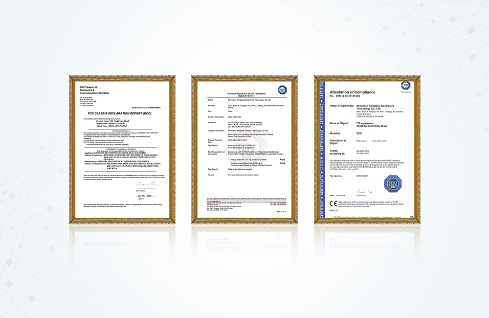 拓寬產(chǎn)品線PCIe、PATA、DOM、金勝維SATA系列產(chǎn)品通過CE、FCC、RoHS等權威認證